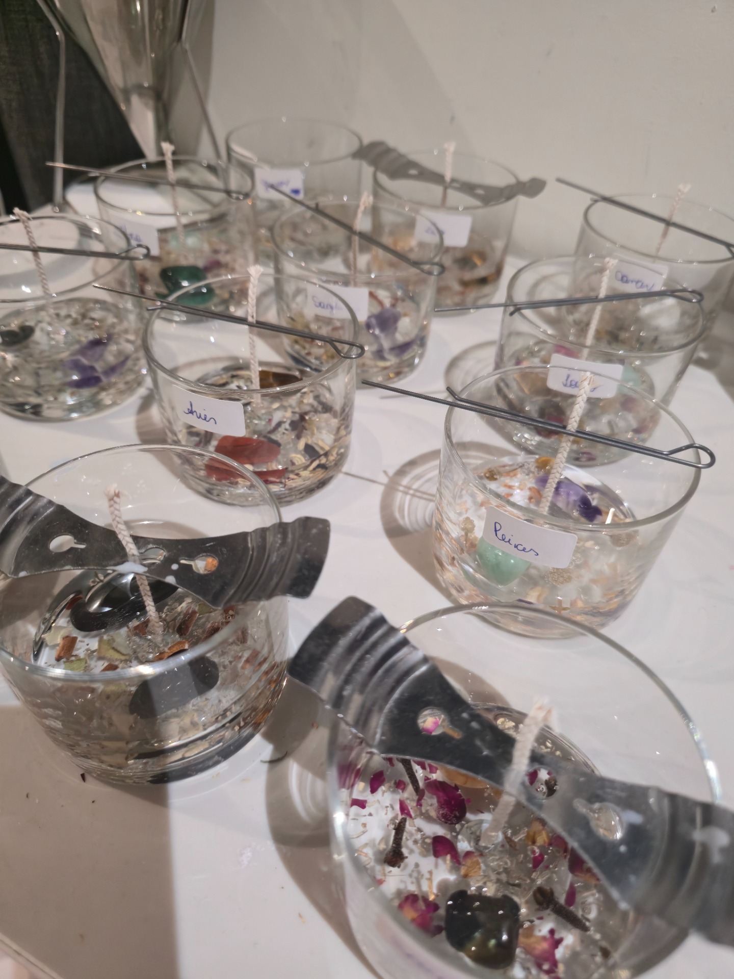 Each zodiac candle contains two crystals and a specific blend of herbs chosen to highlight the best qualities of each sign. Through energetic properties traditionally associated with these elements, the combination is meant to support balance, clarity, grounding, confidence, emotional flow, or expansion — depending on the nature of each sign — allowing its strengths to be expressed with greater presence and intention.